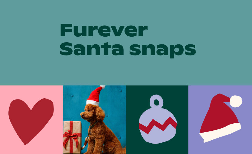 Christmas is better together with your furry friends Bring your furry friends in for their own festive photo with Santa! Capture adorable moments that will make your heart melt (and their tail wag).